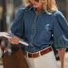 Jeans blouse met pofmouwen