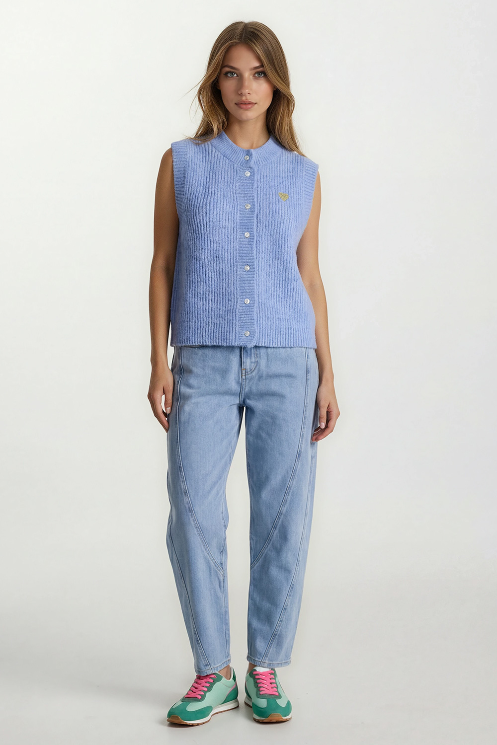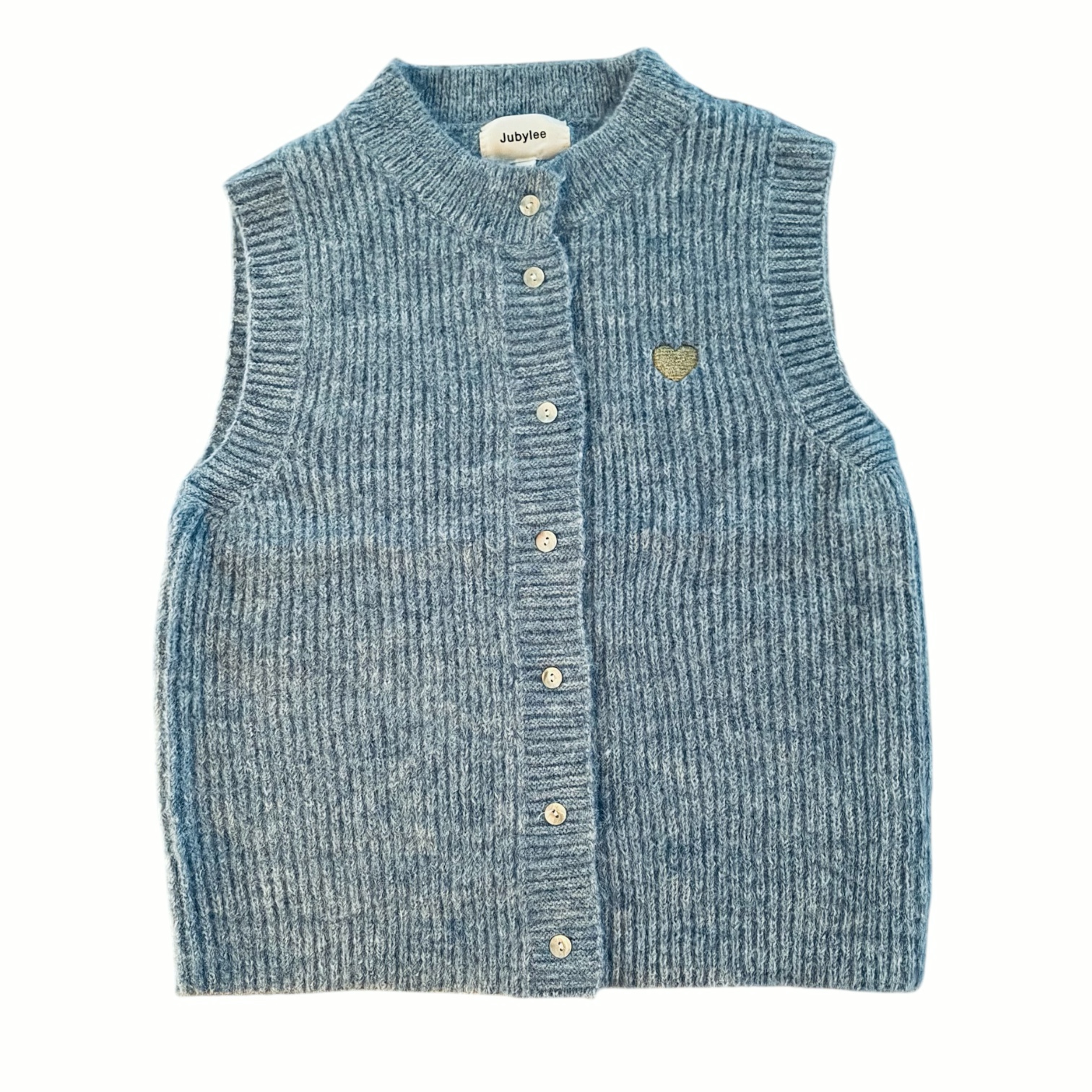 – Gebreid gilet met ribstructuur en geborduurd hartje op de borst
